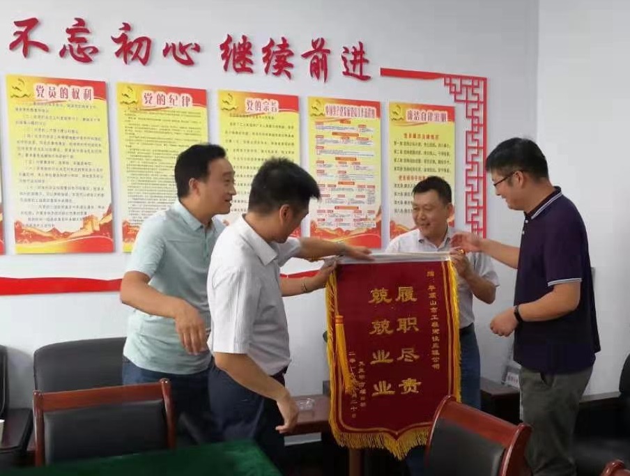 9月6日上午,碧桂園天璽項(xiàng)目甲方代表專程來(lái)到我公司,將一面寫有“兢兢業(yè)業(yè),履職盡責(zé)”的錦旗交到公司總經(jīng)理李國(guó)利手中。李經(jīng)理與甲方代表進(jìn)行了親切交談,兩位代表再三感謝公司監(jiān)理人員在天璽項(xiàng)目監(jiān)理工作中不畏辛勞、認(rèn)真履責(zé)的專業(yè)表現(xiàn)。